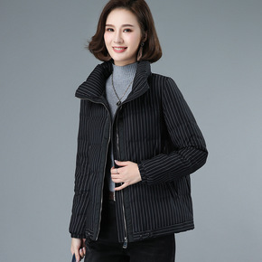 妈妈短款羽绒服女冬装加厚立领条纹外套2021新款宽...