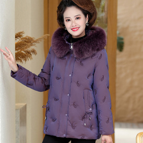 毛领大大码中年妈妈冬装短款加厚袄外套岁棉衣女装50...