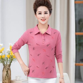 中老年女装长袖t恤妈妈秋装小衫新款打底衫中年40-...