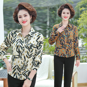 2021新款妈妈春秋衬衫中老年女装上衣40岁50中...