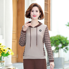 2021新款妈妈秋装外套中年老女装连帽风衣中年大码...