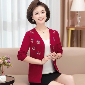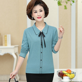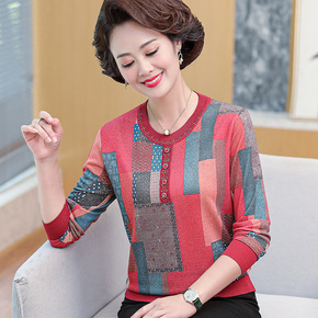 妈妈秋装洋气上衣中年妇女针织小衫 50岁中老年女装...