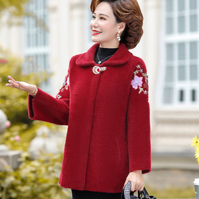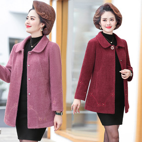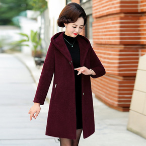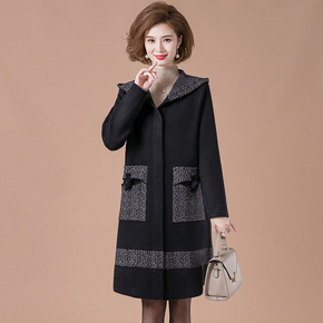 妈妈秋装毛呢外套中年女中长款上衣40岁50中老年女...