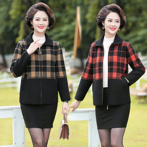 妈妈秋装外套大格子新款洋气休闲50岁中老年女装秋冬...