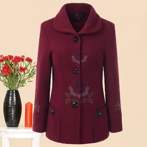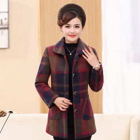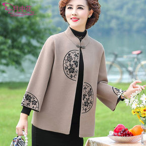 中年妈妈秋装洋气毛呢外套40岁50中老年女装冬装短...