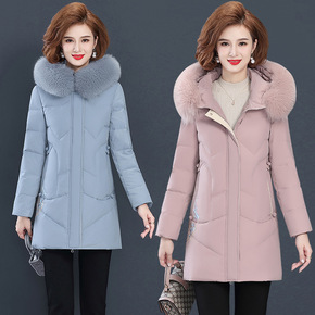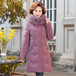 妈妈冬装羽绒服女中长款加厚40岁50中老年人女装大...