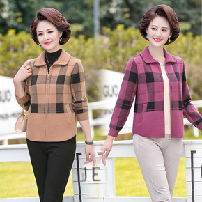 妈妈装春秋短外套2020新款50岁60毛衣针织开衫...
