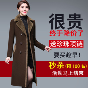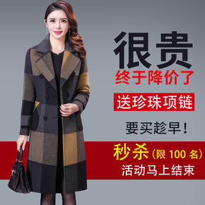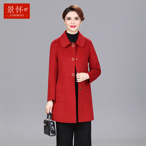 品质保证减龄中年女装长款毛呢大衣女羊毛双面呢妈妈冬...