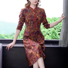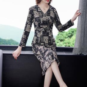 品质保证遮肉中年女装贵夫人修身洋气中长款长袖雕印妈...