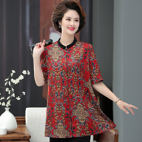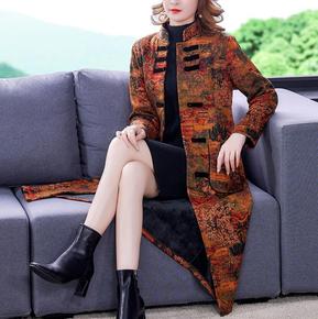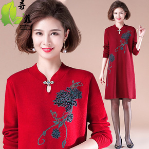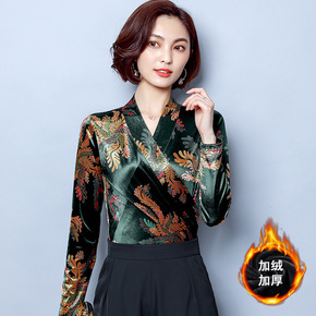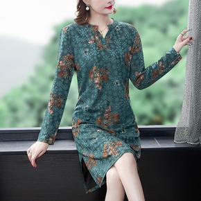 品质保证减龄40岁至59印花V领加绒加厚长袖妈妈装...