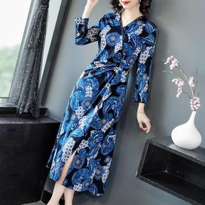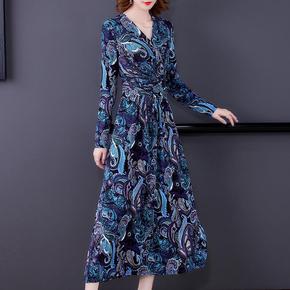 减龄40岁至59中年女装妈妈秋装长袖连衣裙V领过膝...