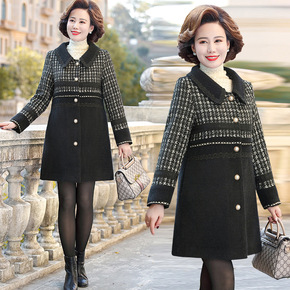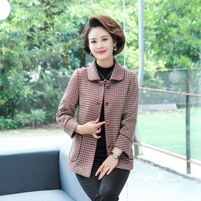 中老年妈妈装短款格子毛呢洋气小香风外套中年女装宽松...