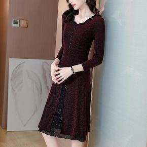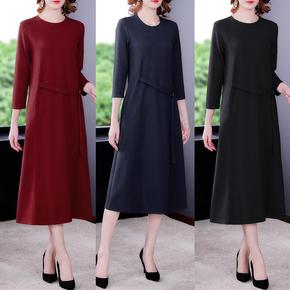 遮肉中年女装修身设计连衣裙法式长袖妈妈秋装收腰显瘦...