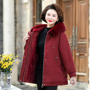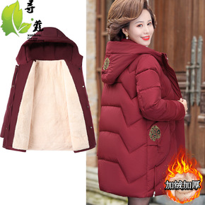 妈妈装加绒棉衣派克服冬装新款中老年女装短款加厚棉服...