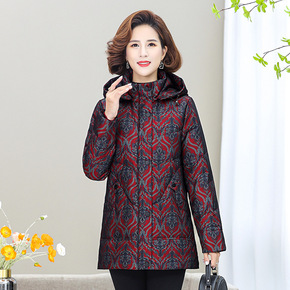 妈妈装冬季新款印花羽绒服奶奶装棉袄中老年女装中长款...