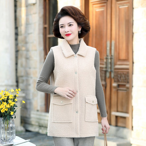 春秋新款妈妈装颗粒绒马夹中老年女装羊羔毛背心外套女...