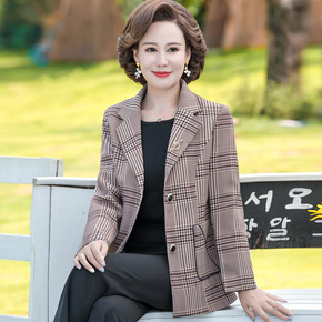 2021初秋妈妈装秋装外套短款格子小西装洋气新款中...