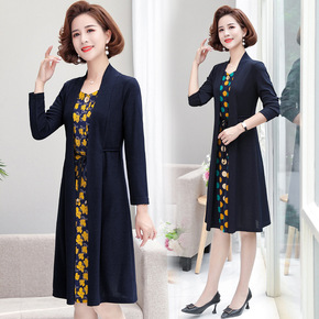 妈妈洋气连衣裙中老年女装秋装2021年新款女长袖假...