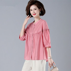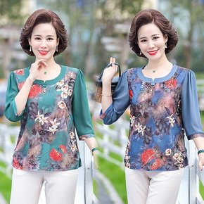 妈妈春夏装七分袖衬衫印花衬衣中年女装40岁50短款...