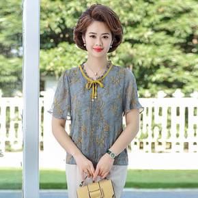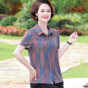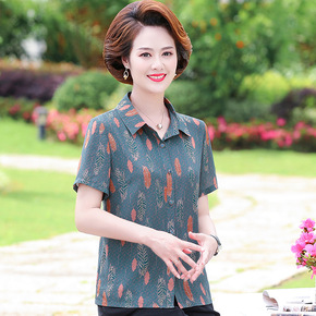 中老年妈妈夏装洋气衬衫上衣女40岁50短袖大码仿真...