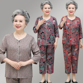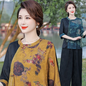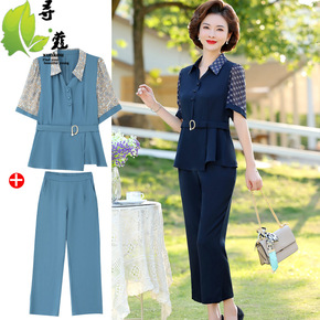 中年妈妈夏季套装2022新款洋气休闲中老年夏装短袖...