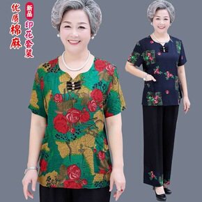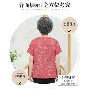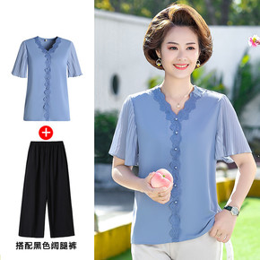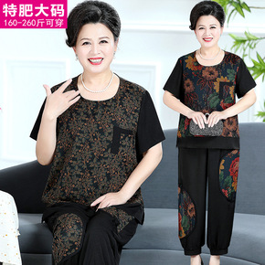 中老年女装减龄两件套阔太太舒适短袖上衣中年胖妈妈夏...