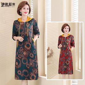 妈妈卫衣短袖套装40岁休闲中年女装洋气连帽宽松T恤...