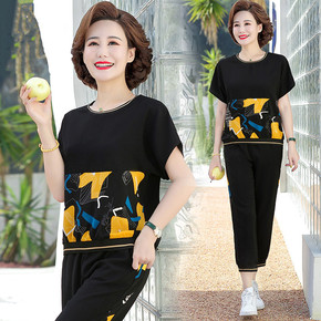 中年妈妈夏装运动服套装短袖T恤时尚2022新款中老...