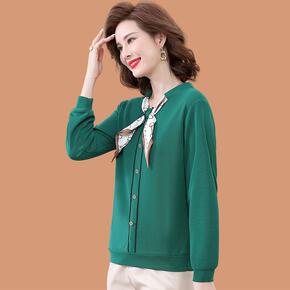 妈妈秋装短款打底衫洋气50岁中老年女装春秋绿色长袖...