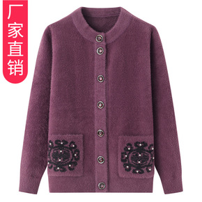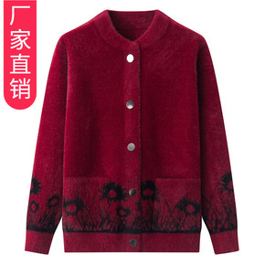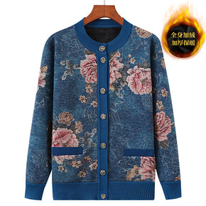 中老年女装冬装加绒针织开衫50岁妈妈秋冬季毛衣中年...