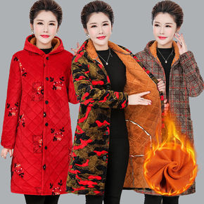 中老年女中长款棉服加大码妈妈装棉衣外套中年秋冬装加...