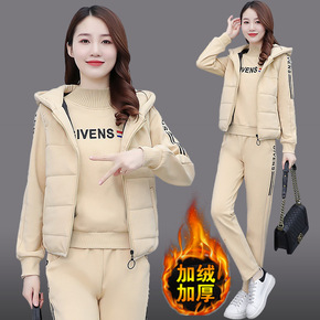秋冬装新款妈妈装加绒卫衣两三件套女装洋气中年减龄休...