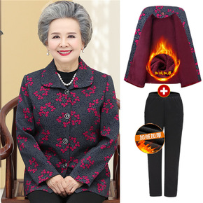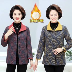 中老年女装妈妈装秋冬装长袖加绒外套老人衣服奶奶装大...