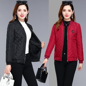中年妈妈晚秋短款外套夹棉棒球服中老年女装薄款棉衣休...