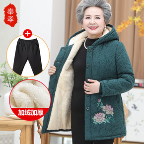中老年人女装奶奶棉袄加绒加厚外套60-70岁80老...