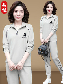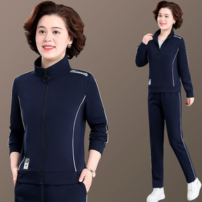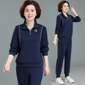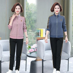 秋中老年运动服套装2022新款妈妈装翻领外套裤子两...