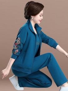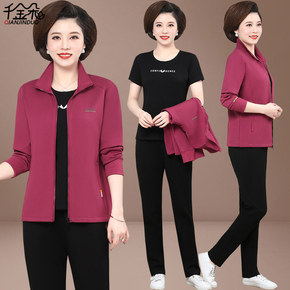 中年妈妈秋装外套洋气大码刺绣上衣三件套中老年春秋运...