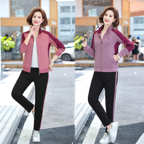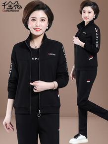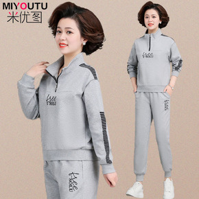 妈妈秋装外套运动套装女春秋大码洋气中年妇女卫衣时尚...