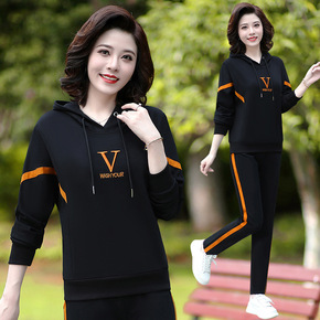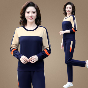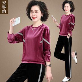 中年妈妈秋装卫衣洋气时尚中老年运动服套装女春秋金丝...