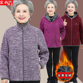 中老年人妈妈装春秋摇粒绒上衣70奶奶秋冬加绒薄棉衣...