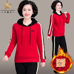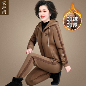 妈妈冬装卫衣套装中老年女秋冬洋气减龄两件套薄款中年...