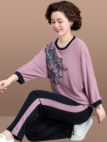 妈妈秋装套装时尚洋气卫衣运动服两件套中老年女装宽松...