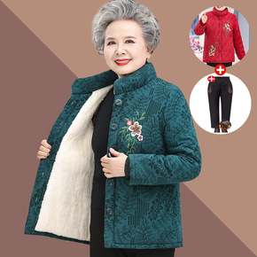 奶奶冬装棉袄加绒加厚棉衣服60岁秋装绣花中老年人外...