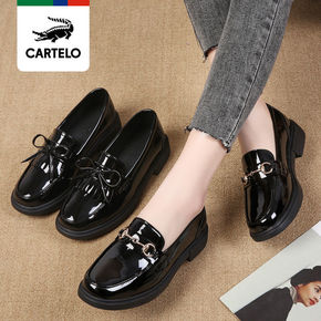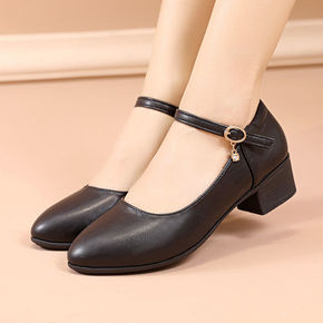 软皮浅口单鞋女新款软底中跟百搭粗高跟妈妈鞋春秋广场...