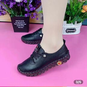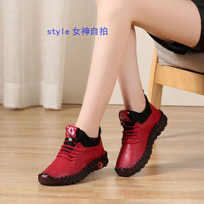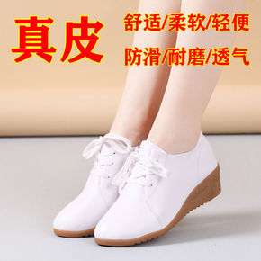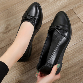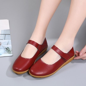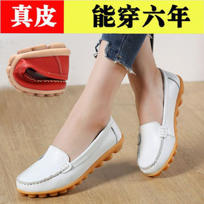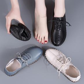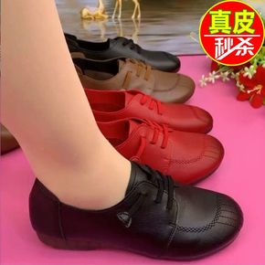 牛筋底女鞋纯皮软底软面舒适单鞋轻便平底妈妈鞋休闲皮...