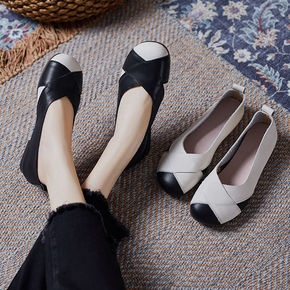 2022春夏单鞋平底女鞋妈妈鞋宽胖脚牛筋底中年女士...