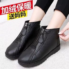 皮面雪地靴女2022冬季新款韩版学生短筒保暖厚底妈...