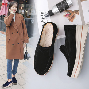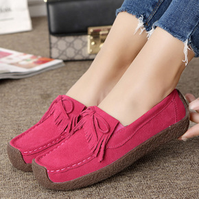 春秋季流苏豆豆鞋女真皮时尚厚底单鞋妈妈坡跟女鞋摇摇...
