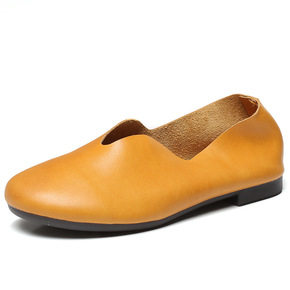 春季森女系奶奶鞋浅口单鞋真皮复古手工鞋圆头平底孕妇...