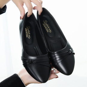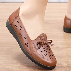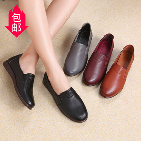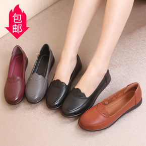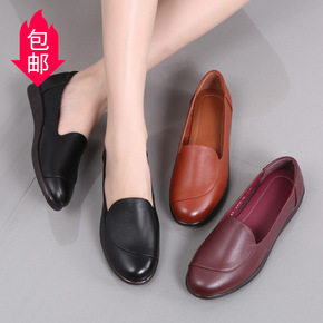 春季新款中老年女鞋软底妈妈鞋女真皮舒适平底浅口女单...